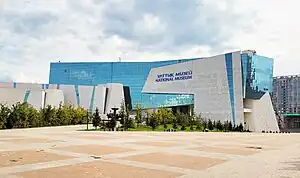 The National Museum of the Republic of Kazakhstan (Kazakh: Қазақстан Республикасының Ұлттық музейі, Qazaqstan Respýblıkasynyń Ulltyq mýzeıi), is located in Astana. When it was built in 2014, it was the largest museum in Central Asia. Made up of blue glass and white marble depicts Kazakhstan's history and culture from prehistoric times to the present. The priceless collection of the National Museum of the Republic of Kazakhstan is made up of numerous treasures that were made public as part of the governmental initiative "Cultural Heritage." The museum's structure draws attention thanks to its distinctive outside shape. According to the Decree of the Head of the State Darkhan Mynbay has been appointed the Director of the National Museum of Kazakhstan. [1]