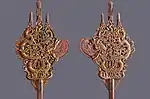 The Minister of Culture, Sports and Tourism specified the order of and procedures for recognising a national treasure, then the decision of granting the title national treasure comes from the Prime Minister of Vietnam with the consultation of National Council for Cultural Heritages.[3] The first set of national treasure is officially designated in October 2012.[4] Up until 2023, 11 sets of national treasures (265 artifacts) had been designated in a series of decrees signed by the Deputy Prime Minister of Vietnam on behalf of Prime Minister. The different combination of treasures into sets only depends on the chronological order of nominations submitted by owners of the treasures, not related to the category or value of the treasures themselves.[5][6] The quantities and designation dates of Vietnamese national treasures are: