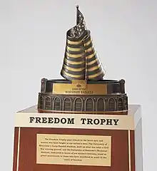 Prior to their meeting in 2014 the athletic departments of both universities announced the two teams would play for the newly created Freedom Trophy, thus cementing the new rivalry status.[14][15] Upon the announcement of the newest Big Ten trophy game, Wisconsin's athletic director Barry Alvarez stated "Trophy games are part of the tradition of college football, and I'm thrilled that we're going to be introducing one into our rivalry with Nebraska."[15]