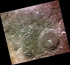![]() Approximate color MESSENGER image with Nervo below right | |