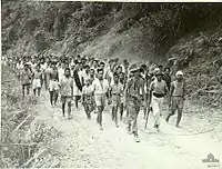 ![]() Villagers reporting to the NICA at Tarakan, following their evacuation during the Battle of Tarakan, 9 May 1945 | |