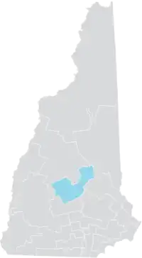 District 7 covers parts of Belknap and Merrimack Counties in the center of the state. The district includes the towns of Andover, Belmont, Boscawen, Canterbury, Franklin, Gilford, Laconia, Northfield, Salisbury, and Webster.[3]