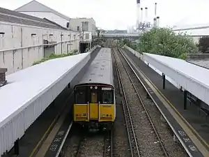 New Hythe railway station is on the Medway Valley Line in Kent, England, serving the village of New Hythe. It is 38 miles 3 chains (61.2 km) down the line from London Charing Cross via Strood and is situated between Snodland and Aylesford. The station and all trains that serve the station are operated by Southeastern.