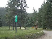 The highway is a part of the Jemez Mountain Trail National Scenic Byway.[2] It is paved near Cuba and La Cueva, but is a graded dirt road for much of its middle section. This section is usually closed during the winter months, and may be impassable for a few days at other times because of muddy conditions resulting from rainstorms.