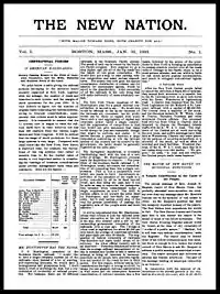 The New Nation was a weekly newspaper launched in Boston, Massachusetts in January 1891 by the American socialist writer Edward Bellamy. The paper served as a de facto national organ of the nationwide network of Nationalist Clubs and expounded upon their activities and political ideas, which derived from the best-selling 1888 novel Looking Backward.