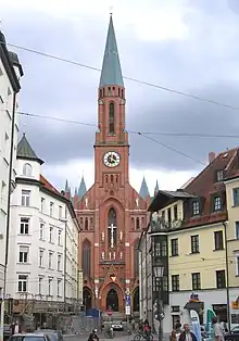 The parish church of St. John the Baptist (German: Pfarrkirche St. Johann or Pfarrkirche St. Johannes der Täufer) is a Roman Catholic church in the Munich district of Haidhausen. It was designed by Matthias Berger on Locust Place in the Gothic Revival style. The west tower is 97 meters high, making it the third highest church in Munich.[1]