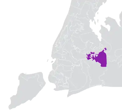 The district overlaps with New York's 3rd, 5th, and 6th congressional districts, and with the 24th, 25th, 27th, 28th, 29th, 32nd, and 33rd districts of the New York State Assembly.[5]