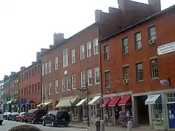 The historic district is dominated by Federal period architecture in both its residential and commercial areas, owing to the city's principal period of prosperity, which came to an end with the advent of the War of 1812, which disrupted the trading activities of its seafaring merchants. It includes a number of properties previously listed on the National Register, including the former US Custom House (now a museum), the main post office, and the National Historic Landmark Caleb Cushing House. A particularly fine series of Federal mansions are to be found on High Street. It also has a substantial amount of residential architecture of the later 19th century, although this tends to be more vernacular in style, as it accompanied the rise of a lower industrial working class in the community.[2]