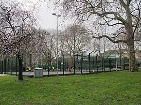 The MUGA (Multi-Use Games Area) courts in the park are regularly used by the London Hardcourt Bicycle Polo Association for casual games and tournaments.