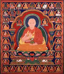 The origins of the Ngor school go back to Ngorchen Kunga Sangpo (also Kunga Zangpo or Kun dga 'bzang po, Tibetan: ངོར་ཆེན་ཀུན་དགའ་བཟང་པོ།) (1382-1444 CE), who was born and educated at Sakya and founded this monastery in 1429.[2] It was renowned for its rich library of Sanskrit texts and magnificent 15th-century Newar-derived paintings. Of its 18 colleges, and Upper and Lower Tsokangs, only one building, the Lamdre Lhakang, has been restored. There were once some 400 monks, but now there are only a few.[3][4][5]