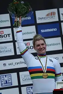 Nicky Degrendele (born 11 October 1996) is a Belgian professional track and road cyclist, who most recently rode for UCI Track Team BEAT Cycling Club.[1] Most notably, she became world champion at the age of 21 in Women's Keirin at the 2018 UCI Track Cycling World Championships in Apeldoorn. She formerly rode for the Sport Vlaanderen–Guill D'or team; in October 2018 she joined BEAT Cycling Club.