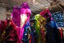 The menswear, a collaboration with Romain Kremer, of Formichetti's debut (Fall/Winter) collection "Anatomy of Change" premiered during the Men's Paris fashion week on 19 January 2011.[38][39] This was accompanied by a video shot by Mariano Vivanco, featuring Formichetti's new muse, the full-body tattooed Canadian model Rick Genest,[40] and by a remix by Lady Gaga, as musical director for the menswear project,[41] of a new track ("Scheiße") from her upcoming album Born This Way.[42] The clothes, worn by Rico Genest and other models on the runway, recall those by Mugler himself from earlier decades, in such ways as the use of the colours navy blue and bright orange,[41] or "hyper-modern"-style jackets lacking lapels.[40] The collection also features some not-so-conventional latex pieces such as biker jackets, gloves, and even latex trousers.[40][41] On the overall vision, Cathy Horyn of The New York Times describes Formichetti creating a "mechanical man" in the tradition of Mugler's fantastical woman,[43] yet Adam Tschorn of the Los Angeles Times found plenty of the pieces surprisingly wearable.[41] Formichetti himself says on the collection "I want to say something that has the past and the future, but what is really important to me is the present."[38] Returning to Rico Genest, it was his discovery by Formichetti and then Gaga's urging which actually resulted in the menswear show, something not originally planned.[44] Genest's discovery also influenced the collection itself.[44] The show was streamed live from Paris on the Internet.