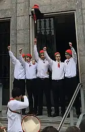 The Nicolinas have 8 main festivities, the Pinheiro, the Novenas, the Danças de São Nicolau, the Posses e Magusto, the Pregão, the Maçãzinhas, the Baile da Saudade and the Roubalheiras.[6] They are organized by the Nicolinas Festivities Committee, a group of male students of, traditionally, the Guimarães High School.[7][8] The people that actively participate in the festivities are called Nicolinos.[9]