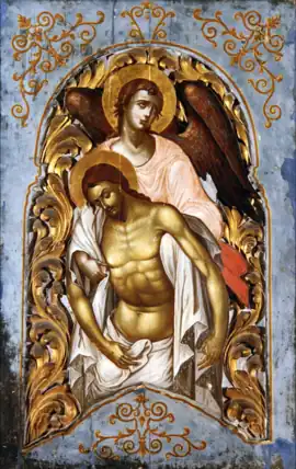 Nikolaos Kallergis (Greek: Νικόλαος Καλλέργης; 1699–1747), also known as Kalergis. He was a Greek painter during the Greek Rococo and the Modern Greek Enlightenment in art also known as Neo-Hellenikos Diafotismos. His art also exhibited Venetian influence. Painters of the maniera greca began to refine their art. Philotheos Skoufos, Elias Moskos, and Theodore Poulakis were all active painters on the Ionian Islands prior to Kallergis. They set the stage for the transition to the Heptanese School. Panagiotis Doxaras is the forefather of the new painting style. He was the father of Greek Rococo and the Modern Greek Enlightenment in painting. Kallergis became an active member of the school. Kallergis also represents the Greek Rococo. His art began to exhibit qualities of Greek and Italian Neoclassicism. His style influenced countless painters. Examples include Nikolaos Kantounis, Nikolaos Koutouzis, Nikolaos Doxaras, Spiridione Roma, and Eustathios Karousos. His most famous work is Christ and Angel it is at the Zakynthos Museum.[1][2][3][4]