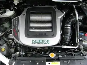 The YD22DDTi was a common rail diesel introduced in 2001, during the first small facelift of the P12 Primera, N16 Almera and V10 Almera Tino. It is also fitted to the Nissan X-trail. The injection system is common rail with a variable vane turbocharger is intercooled and produces the most power and torque of all the YD22 engines. Cars with this common rail engine usually carry the DDTI badge. The common rail version is easily distinguished from the VP44 model by the four injector bumps on the top of the acoustic cover.