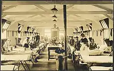 The interior of a ward at No.3 New Zealand General Hospital in Codford, Wiltshire (1917)
