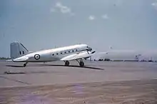 A RAAF Dakota transport at RAAF Base Darwin in 1961. This aircraft opened the new runway at Darwin when it was complete.