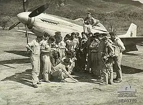 On 21 May 1945, No. 84 Squadron began to be re-equipped with CAC Mustang fighters, and it was fully equipped with the type by 29 July.[13] However, the war ended before the squadron had completed conversion training and it did not use them in combat.[2] Between 30 August and 7 September, No. 84 Squadron pilots ferried six Mustangs to Labuan island off Borneo for service with the First Tactical Air Force. The squadron's flying activity decreased during 1945, and the unit was disbanded at Ross River on 29 January 1946.[13]