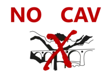 The phrase No Cav, short for "No Cave" (No Quarries, in Italian), was used for the first time in an article from Il Tirreno in 2014 to define the activists who had taken part in a demonstration organized by Salviamo le Apuane (Save Apuan Alps).[6]