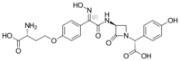 (2R)-2-Amino-4-[4-[N-hydroxy-C-[[(3S)-1- [(1R)-2-hydroxy-1-(4-hydroxyphenyl)-2- oxoethyl]-2-oxoazetidin-3- yl]carbamoyl]carbonimidoyl]phenoxy]butanoic acid | |