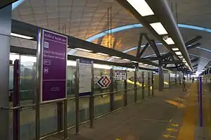 Nonthaburi Civic Center station (Thai: สถานีศูนย์ราชการนนทบุรี, RTGS: Sathani Sun Ratchakan Nonthaburi) is a Bangkok MRT station on the Purple Line and Pink Line. The station is located on the Rattanathibet road in Nonthaburi Province.[1] The station opened on 6 August 2016 on the Purple Line, while the Pink Line opened on 21 November 2023.[2]