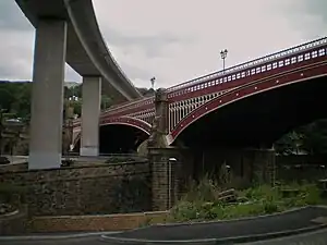 North Bridge, Halifax is a Victorian iron and stone bridge at Halifax, West Yorkshire, in northern England. It crosses the valley of the River Hebble, connecting the town to roads to Bradford and Leeds. Replacing an earlier six arch stone bridge, it was raised to allow the subsequent construction of the Halifax and Ovenden Joint Railway beneath it, including North Bridge railway station. Opened in 1871 amid chaotic crowd scenes it carried increasingly heavy traffic until it was by-passed by the Burdock Way in 1973. It remains in use for local traffic.[1]