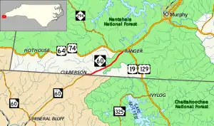 North Carolina Highway 60 (NC 60) is a primary state highway in the extreme southwestern corner of North Carolina. The highway runs northsouth from the Georgia state line to U.S. Route 64/U.S. Route 74 (US 64/US 74), near Ranger.