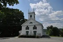 The district was listed on the National Register of Historic Places in 2005.[1] It extends along NH 12A from its junction with Ox Brook Rooad south to the Little Sugar River, just north of its junction with Depot Hill Road. Notable buildings include the 1841 Greek Revival Methodist Church, the Union Hall/Grange Hall built in 1888, and the Farwell School, a stone building erected in 1889. Most of the district's buildings are wood-frame houses, although there are two of brick. Stylistically, they are typically vernacular expressions of Federal and Greek Revival architecture, although examples of Italianate and Second Empire architecture are also to be seen. The district also includes ruinous mill remnants on the Little Sugar River.[2]