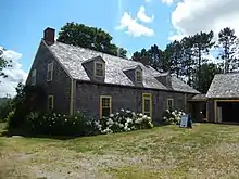 The site also includes a small barn and dry toilets. The outbuildings are covered in the same manner as the wooden shingle house. A garage, which is a later addition, is attached to the house by a covered passage.[2]