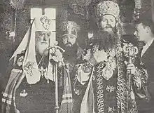 Patriarch of the Russian Orthodox Church Alexy I performing a joint ceremony with Macedonian Archbishop Dositheus II in Skopje, 1962.
