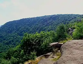 North Point is an area with many open ledges located at 2,900 feet (880 m), along the trail about a half-mile (800 m) below the summit. From North Point, the views of the lakes, other mountains such as Kaaterskill High Peak and the Hudson River and its valley are expansive. They were sometimes the subject of paintings by members of the Hudson River School.