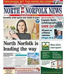 The North Norfolk News is a weekly newspaper serving part of Norfolk, England. Towns and villages it covers include Cromer, Sheringham, North Walsham, Aylsham, Holt, Stalham, Wells-next-the-Sea, Reepham, Hoveton and Wroxham.[2] It is published by the Archant group on Thursdays, and its website is updated several times every day.