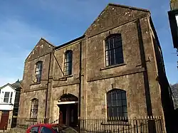 The new building was designed in the neoclassical style, built by a local builder, J. Parish, in ashlar stone at a cost of £750 and was completed in 1849.[1][3][4] The design involved a symmetrical main frontage with three bays facing The Square; the central bay featured, on the ground floor, a segmental doorway with a fanlight, an architrave and a keystone, and, on the first floor, a segmental sash window. The outer bays were fenestrated by segmental sash windows on both floors and surmounted by pedimented gables.[1] All three bays were flanked by full-height pilasters.[1] Internally, there was an entrance hall with reception rooms on either side.[1]