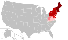Northern American English or Northern U.S. English (also, Northern AmE) is a class of historically related American English dialects, spoken by predominantly white Americans,[1] in much of the Great Lakes region and some of the Northeast region within the United States. The North as a super-dialect region is best documented by the 2006 Atlas of North American English (ANAE) in the greater metropolitan areas of Connecticut, Western Massachusetts, Western and Central New York, Northwestern New Jersey, Northeastern Pennsylvania, Northern Ohio, Northern Indiana, Northern Illinois, Northeastern Nebraska, and Eastern South Dakota, plus among certain demographics or areas within Michigan, Wisconsin, Minnesota, Vermont, and New York's Hudson Valley.[2] The ANAE describes that the North, at its core, consists of the Inland Northern dialect (in the eastern Great Lakes region) and Southwestern New England dialect.[3]