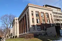 Named after George Edgar Vincent, the third president of the university,[36] and at one time housed parts of the university's English and Mortuary Science departments.[37] In 1960, a renovation project connected Vincent to the nearby Murphy Hall, directly behind it.[38] A later renovation project, carried out by Loeffler Construction and Consulting, upgraded floors, interior finishes, and general accessibility, along with replacement of the windows and the addition of several fixed tables within classrooms.[39] The building currently contains the School of Mathematics and its Library.[36]