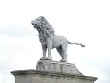 The Percy Lion (crest of Percy), after a model by Michelangelo, removed from Northumberland House in 1874, prior to demolition, by the 6th Duke and placed atop Syon House,[1] his seat to the west of London.