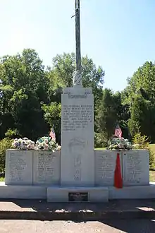 Cannelton newspaper editor and civic booster Bob Cummings wrote the words that are inscribed on the memorial along with the names of those who died. The inscription reads: "This memorial, dedicated to the memory of 63 persons who died in an airplane crash at this location, March 17, 1960, was erected by public subscription in the hope that such tragedies will be eliminated."