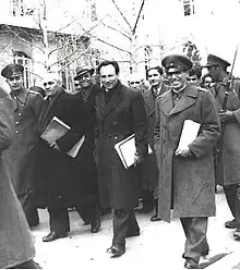 Noureddin Kianouri (Persian: نورالدین کیانوری; 1915–1999) was an Iranian construction engineer, Urban planner Professor of Bauakademie der DDR in Berlin [1][2][3][4] and a communist political leader. He studied first at University of Tehran until 1934[5] and later in Germany from 1934 to 1939. Before his return to Iran he practiced architecture as well though he is mostly remembered as a construction engineer in Munich office of Philipp Holzmann.[6][7] About a year after foundation of Tudeh Party he joined the party with the membership number 444 in May 1942. Later he became one of the influential members of the Central Committee for the communist Tudeh Party,[8] Following the 1953 Iranian coup d'état the party was banned and Kianouri was imprisoned. He fled, and lived in Italy and later East Germany; under the pseudonym "Dr. Silvio Macetti" he was an influential architect and theorist of socialist architecture and city planning.[9][10]