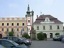 The main landmark of the town square and whole town is Church of Saints Peter and Paul. It was built in 1335.[6]