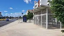 Nullarbor Avenue is a light rail station on the Canberra Metro R1 Civic to Gungahlin line, located at the intersection of Nullarbor Avenue and Flemington Road. The station was a key location during construction and testing of the light rail route[1] and serves the suburbs of Franklin and Harrison. A crossover track is located immediately north of the platforms, making it possible for light rail vehicles to terminate here, however currently all services continue through the station. The station offers bicycle lockers in addition to "kiss and ride" bays, installed around the intersection adjacent to the station.[2]