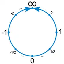 As a locally compact space, the real line can be compactified in several different ways. The one-point compactification of R is a circle (namely, the real projective line), and the extra point can be thought of as an unsigned infinity. Alternatively, the real line has two ends, and the resulting end compactification is the extended real line [−∞, +∞]. There is also the Stone–Čech compactification of the real line, which involves adding an infinite number of additional points.