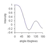 θ runs from 0 to 180 degrees, after which the function merely repeats itself. The plot for a 9-point quadratic/cubic smoothing function is typical. At very low angle, the plot is almost flat, meaning that low-frequency components of the data will be virtually unchanged by the smoothing operation. As the angle increases the value decreases so that higher frequency components are more and more attenuated. This shows that the convolution filter can be described as a low-pass filter: the noise that is removed is primarily high-frequency noise and low-frequency noise passes through the filter.[31] Some high-frequency noise components are attenuated more than others, as shown by undulations in the Fourier transform at large angles. This can give rise to small oscillations in the smoothed data[32] and phase reversal, i.e., high-frequency oscillations in the data get inverted by Savitzky–Golay filtering.[33]
