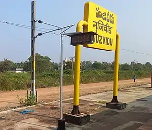 Nuzvid railway station (station code:NZD[1]), is the railway station under the jurisdiction of Indian Railways. It serves Hanuman Junction and Nuzvid town situated in the Krishna district of Andhra Pradesh. Nuzvid railway station falls under Vijayawada railway division of South Central Railway zone. It is situated on the Howrah–Chennai main line.[2][3][4] It is one of the 27 rural stations in the state to have Wi-Fi.[5]