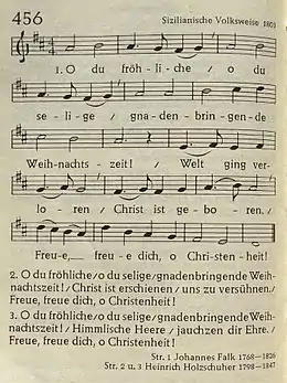 - ↑ Falk, Johannes Daniel (30 January 1817). "O du fröhliche". Zweiter Bericht der Gesellschaft der Freunde in der Noth. Weimar.
