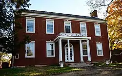 Oakwood, also known as the Abiel Leonard House, is a historic home located at Fayette, Howard County, Missouri. It was built about 1834–1836, with alterations occurring in 1850–1851, 1856–1858, the 1890s, and 1938. It is a two-story, Federal style brick I-house with a two-story rear ell with a double gallery porch. The front facade features a small classical portico. Also on the property are the contributing brick slave house, a second brick slave house (1857) adjoining an existing brick smokehouse, an ice house, and a fruit cellar.[2]: 3