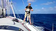 Started from Brest (France) on 28 November 2013, the OceanoScientific Campaign - ATLANTIC MISSION 2013 - 2014, led on the 16-meter Navire A Voile d’Observation Scientifique de l’Environnement (NAVOSE) bearing the colours of the MEROCEANS[13] foundation, came to an end in Monaco on 26 April 2014. In addition to the tests of the OceanoScientific System (OSC System) Version 3.0, a unique material collecting data of ten scientific parameters at the ocean - atmosphere interface, this 10,000 nautical miles (18,520 km) expedition enabled the deployment of drifting scientific materials in compliance with the requirements of JCOMMOPS, a UNESCO agency. In the meantime, the OSC System won the 2013 French-German Prize of Economy[14] in the Environment category. As from now one, the scientific data collected by the OSC System will be transmitted to the CORIOLIS[15] network. This campaign was carried out in energy self-sufficiency, without any CO2 emission, thanks to the hydro generators installed on board.