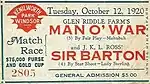 - In a two horse race between the most successful Throughbreds in North America, once-beaten Man o' War competed against 1919 Triple Crown winner Sir Barton at Kenilworth Park Racetrack in Windsor, Ontario. The prize for winning the Kenilwoth Cup was a record $75,000, with a gold trophy valued at an additional $5,000.[59]