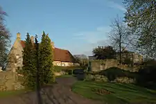 The old stones were used in the construction of the new manor, but otherwise there is little left of the original castle. Only cropmarks and earthworks remain.