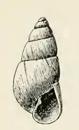 The elongate-conic shell is of medium size, measuring 6.1 mm. It is yellowish-white, the exterior surface marked by irregular tumescences, giving it a much worn appearance. The three whorls of the protoconch are deeply immersed, having their axis at about a right angle to the axis of the succeeding turns. The six whorls of the teleoconch are moderately well rounded and faintly shouldered at the summit. The sutures are simple and well marked. The periphery and the base of the body whorl is well rounded, the latter somewhat elongated. The umbilicus is faint. The pyriform aperture is quite large. The posterior angle is obtuse. The outer lip is moderately thick. The columella is very oblique, fairly strong, revolute, with a strong fold somewhat anterior to its insertion. The parietal wall is covered with a fairly strong callus.[4]