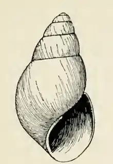 The small shell measures 4.4 mm. Iti is elongate ovate, yellowish white. The nuclear whorls are small, almost completely immersed in the first of the succeeding turns. The five post-nuclear whorls moderately well rounded, with rounded summits. They are marked by retractive lines of growth and many fine, closely placed spiral striations. The sutures are well impressed. The periphery of body whorl are well rounded. The base of the shell is well rounded, marked like the spire. The aperture is ovate. The posterior angle is acute. The outer lip is thick within and thin at the edge. The columella is very short, very strongly curved, somewhat revolute, reinforced by the attenuated base and provided with a strong fold at its insertion.[4]